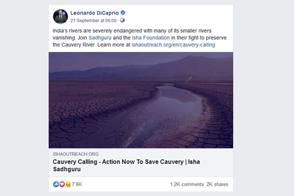 On September 21, DiCaprio urged people to join the campaign ‘Cauvery Calling’ through social media.