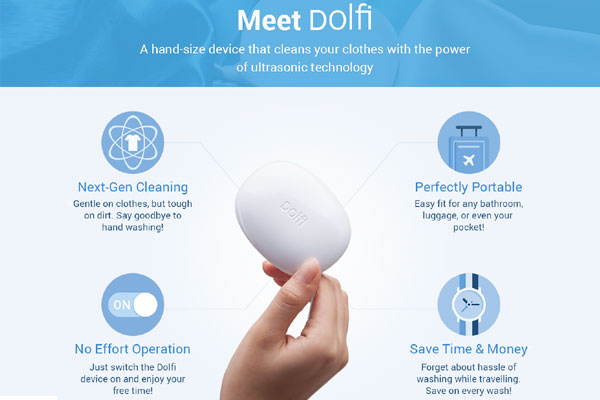 The developers of Dolfi claim that the device consumes about 80 times less energy than a standard washing machine.